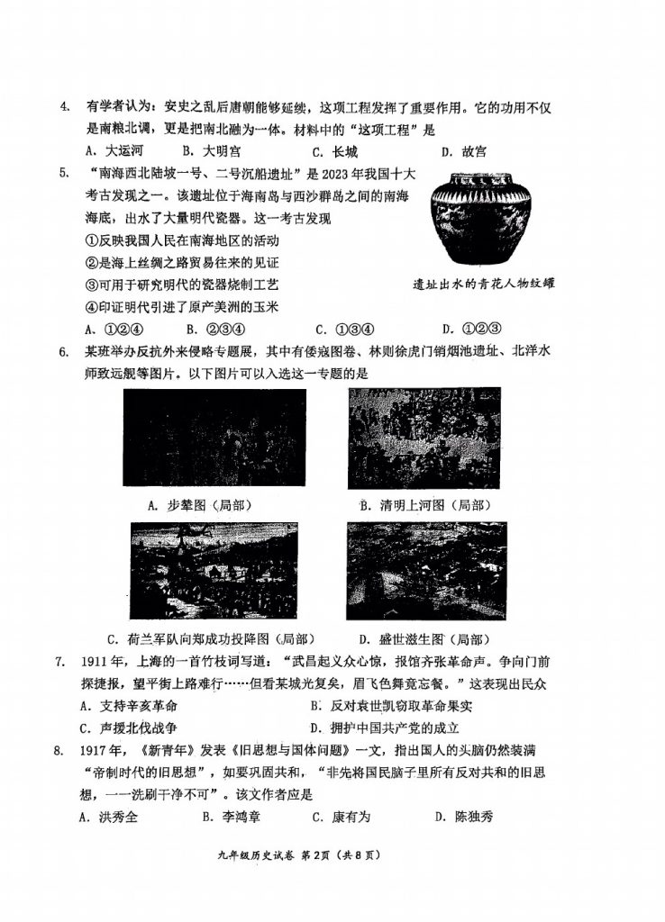 首页 初二试题 2025北京延庆区初中学业水平考试历史试题及答案