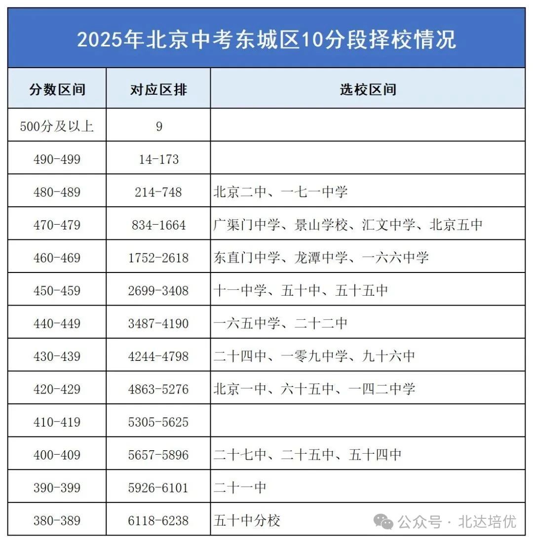 1、现有数据显示,2025 年东城区 6 804 人参与排位,录取线最高的是北京二中,485 分对应区排 389;翔宇中学因计划未满已启动补录。