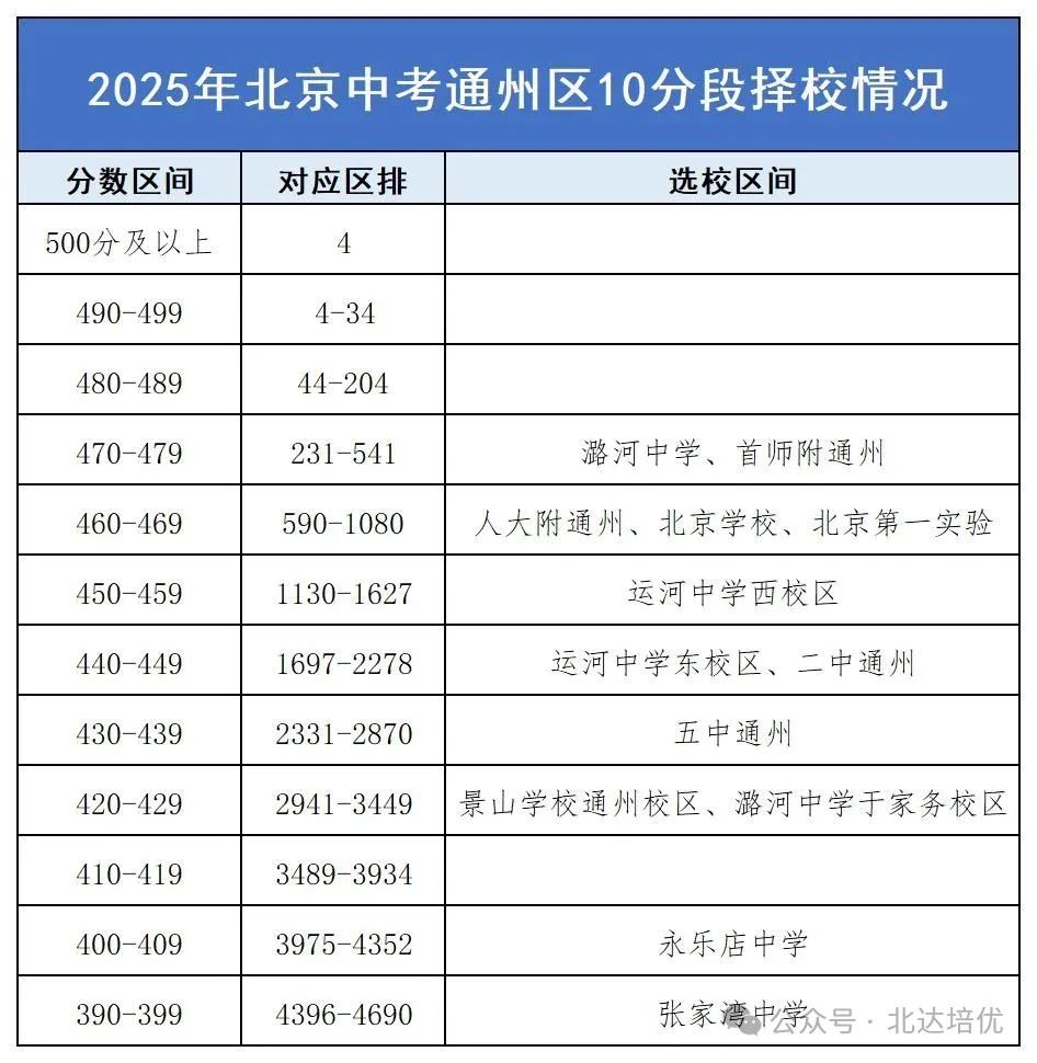 根据目前收集的数据来看,2025年通州区共有5924人参与区排,录取分数线最高的学校是潞河中学475(区排364),最低为张家湾中学391(区排4661)。
