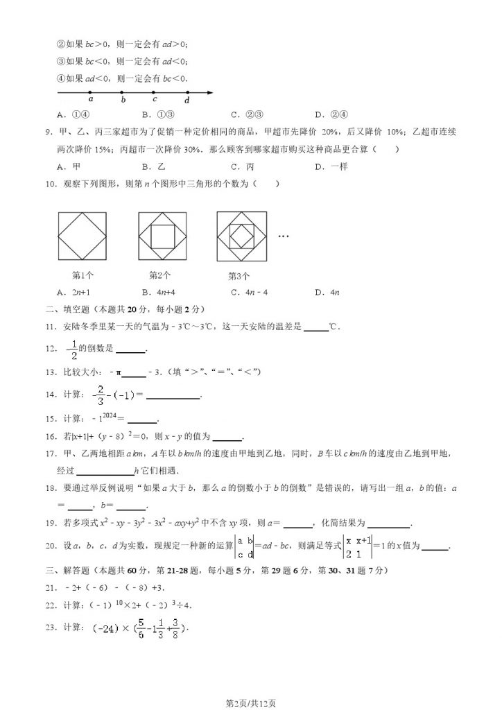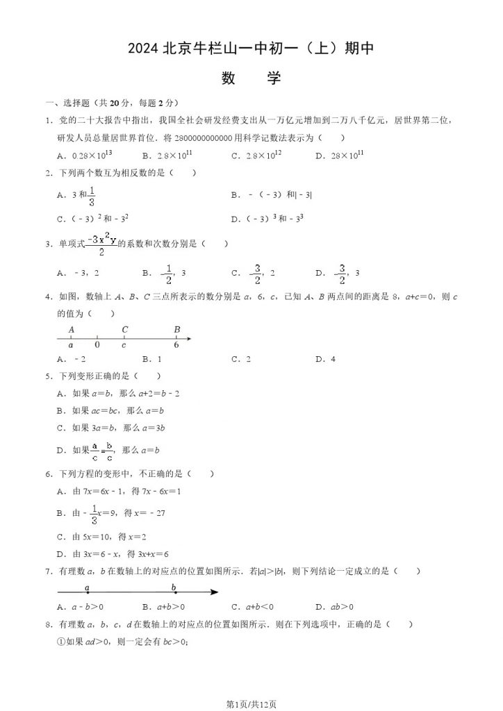 为方便大家对答案、下载练习等小编整理了2024北京牛栏山一中初一(上)期中数学试题及答案,需要的小伙伴赶紧下载练习起来吧: