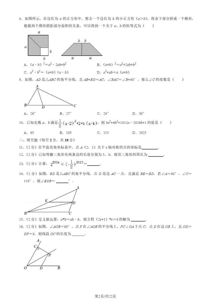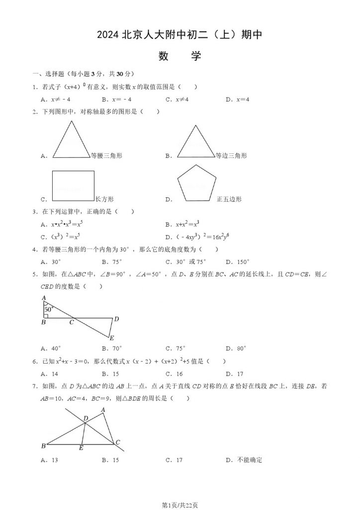 为方便大家对答案、下载练习等小编给大家搜集了2024北京人大附中初二(上)期中数学试题及答案,需要的小伙伴赶紧下载练习起来吧: