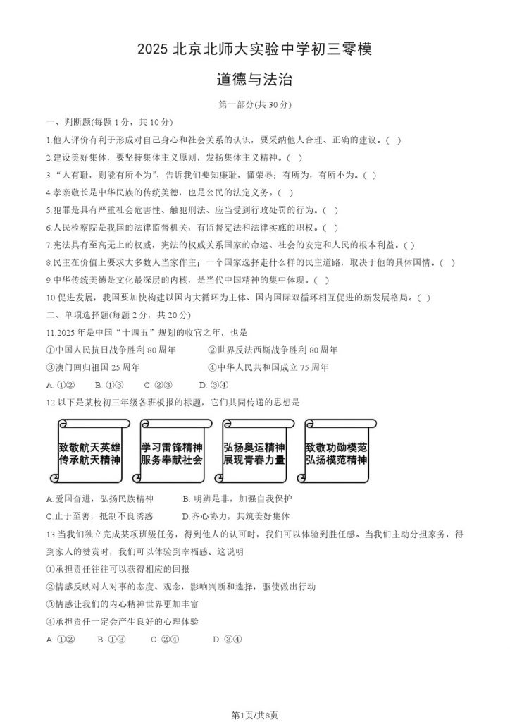 2025北京北师大实验中学初三零模道法试题及答案 //www.cfjuqp.com/zhongkao/88945.html Sat, 19 Apr 2025 07:56:15 +0000 //www.cfjuqp.com/zhongkao/?p=88945 北达教研组收集整理了2025北京北师大实验中学初三零模道法试题及答案,分享给大家,快来下载复习吧。